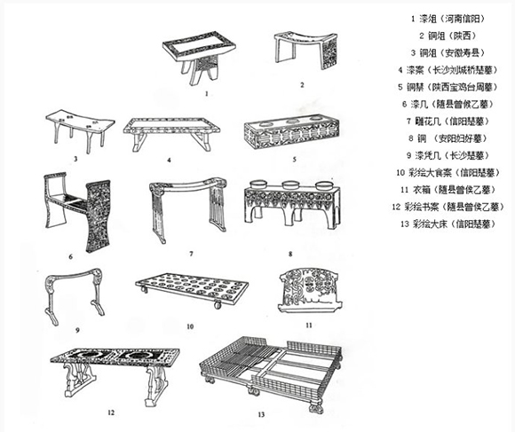 最早的夏商時(shí)期,其家具造型紋飾顯得原始古拙,質(zhì)樸渾厚。這一時(shí)期出現(xiàn)的家具:青銅家具(如青銅俎)、石質(zhì)家具(如石俎和漆木)、鑲嵌家具(如漆木抬盤)。由于當(dāng)時(shí)人們存在濃厚的鬼神觀念,其裝飾紋樣往往有一種莊重、威嚴(yán)、兇猛之感。