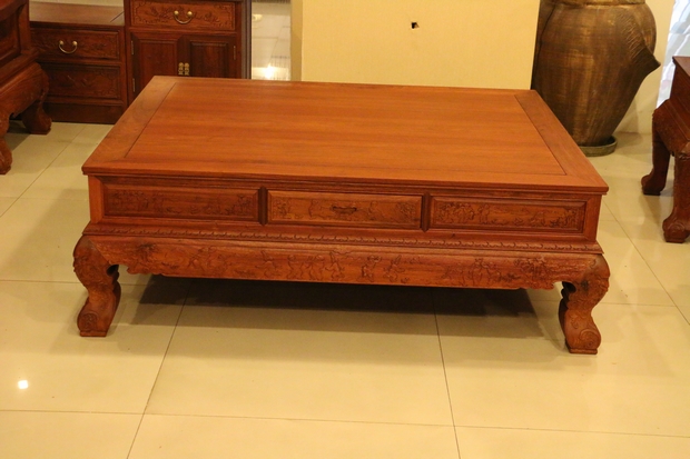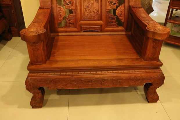 然后是沙發(fā)的座面,溫潤(rùn)細(xì)實(shí),經(jīng)燙蠟工藝處理后的緬花木面更帶有一種淡淡地透亮光澤,古香古韻。再在下方位置,束腰及牙條部分同樣還有幾些人物、花草、幾何紋飾以及祥云之浮雕雕刻,給人以一種如履仙境之感,藝術(shù)畫(huà)面感極為強(qiáng)烈!